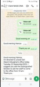 According to credible accounts, at about 2:37 a.m. an “uncommon” directive was allegedly issued, instructing the Clerk of the National Assembly to unseal Senator Akpoti’s office. The Clerk reportedly communicated this action directly to the senator’s Chief of Staff.