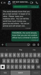 In what can only be described as a masterclass in unprofessionalism, the duo has turned a high-stakes investigation involving Senator Natasha H Akpoti -Uduaghan into a personal feud fit for a reality TV show, with leaked chats revealing Fakorede calling Mgbeke a “criminal, blackmailer and a mad bitch,” and Mgbeke returning fire by dubbing the senior police officer a “criminal in uniform.”